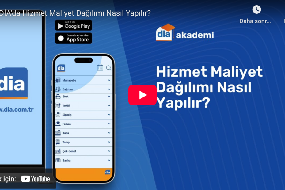 DİA Destek – Hizmet Maliyet Dağılımının nasıl yapıldığını anlatan eğitim videosudur. 0 533 652 70 41